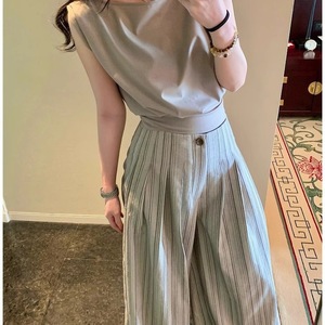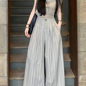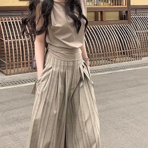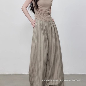 誉芝yuzhi 通勤感条纹阔腿裤夏季新款褶皱设计休闲百搭直筒长裤女