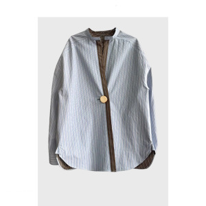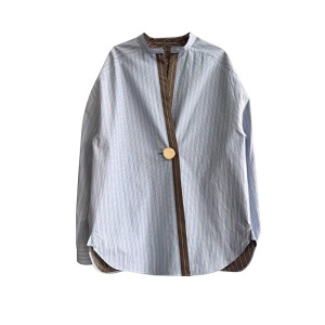 早春新款胖MM大版宽松复古减龄长袖条纹衬衫上衣女装休闲百搭小衫