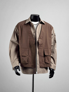 日系撞色假二件纯棉衬衫男设计感潮牌百搭休闲外套春秋宽松上衣男