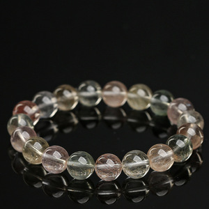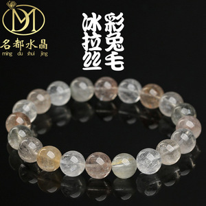 名品都水晶 天然彩兔毛发丝手链 冰种拉丝彩兔毛发晶圆珠手串批发