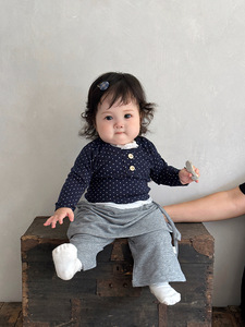女宝宝春秋款甜美衣服裤子套装女童假两件波点上衣婴儿宽松牛仔裤