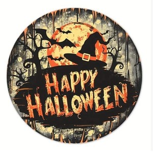 现货万圣节木质前门廊门牌木制工艺品挂牌万圣节派对装饰圆形标牌