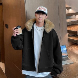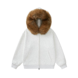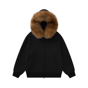 2025秋冬新款520G重磅美式复古连帽可拆卸毛领大码开衫卫衣外套