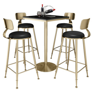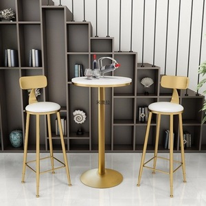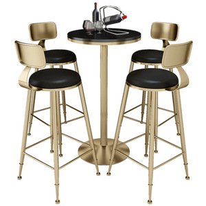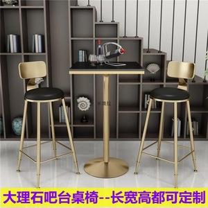 大理石吧台桌奶茶店高吧桌圆形高脚桌商用小吧台圆桌小型酒吧桌椅