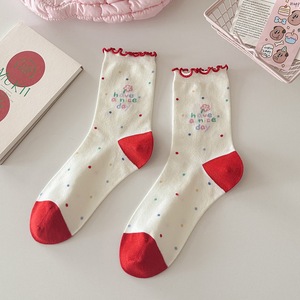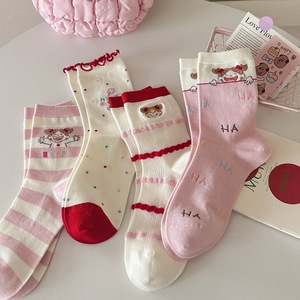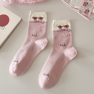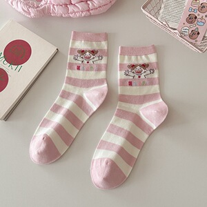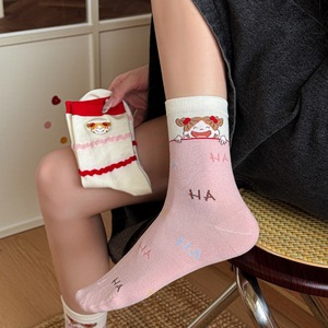 秋冬无骨韩国风可爱袜子女kiki酱趣味学院风精梳棉中筒袜学生袜子