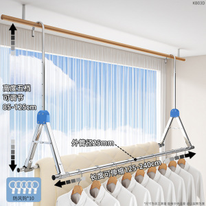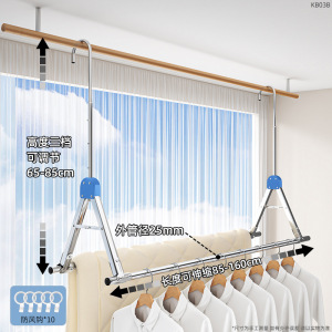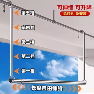 晾衣架家用阳台伸缩晾衣杆升降凉衣捍吊挂不锈钢免打孔晒被子神器