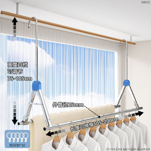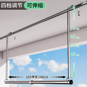 双杆 四挡调节可伸缩长105-200cm+送10防风钩【特粗不锈钢】