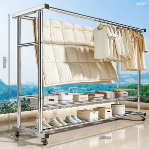 不锈钢晾衣架落地阳台家用挂衣服架加粗晾衣架双杆户外晒被子神器