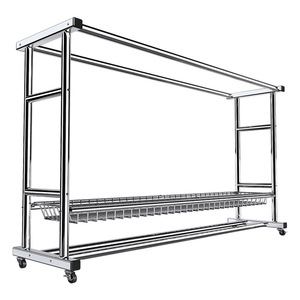 【特粗不锈钢】150CM双杆-单层置物架+万向轮
