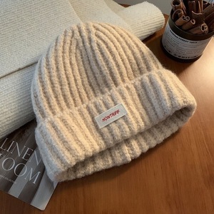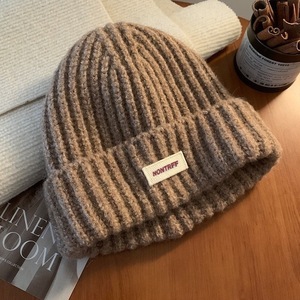 蓝色针织毛线帽女2025秋冬季大头围百搭帽子显脸小保暖护耳包头帽