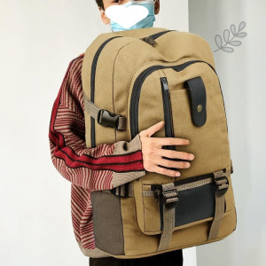 背包工地耐磨帆布男士工具双肩包大容量耐磨背包简单书包旅行包