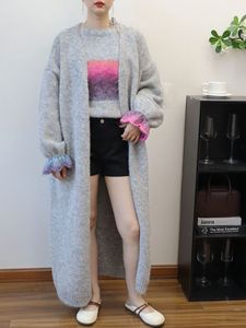 渐变色设计感针织吊带马甲长款毛衣外套两件套2025秋冬新款套装女