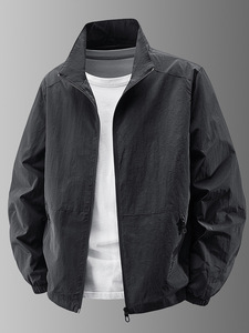 春秋薄款男士夹克外套2025新款立领休闲宽松透气户外钓鱼防晒衣服