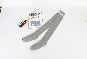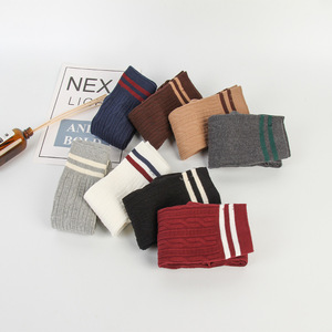 批发袜子新款女春秋麻花纹全棉长筒袜套两条杠学院舞蹈护腿过膝袜