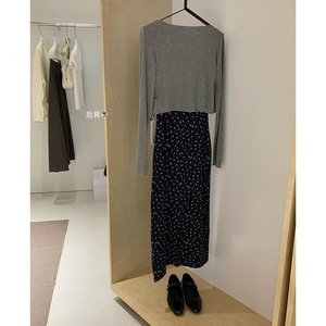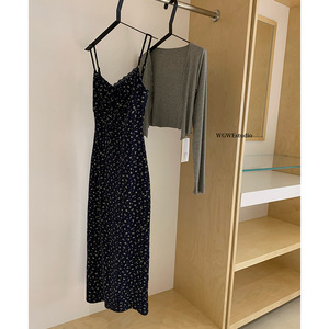 WGWE6658【清潭洞女高】韩系碎花连衣裙秋吊带针织开衫两件套