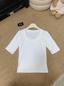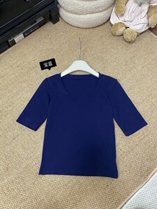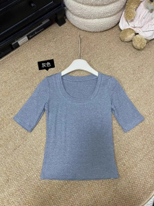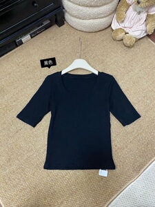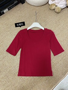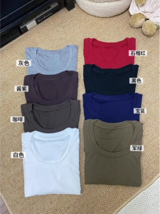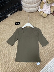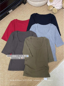 基础款简约纯色正肩中袖T恤女秋季百搭修身显瘦休闲上衣