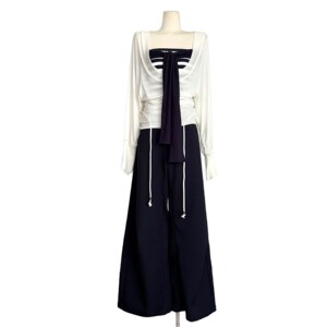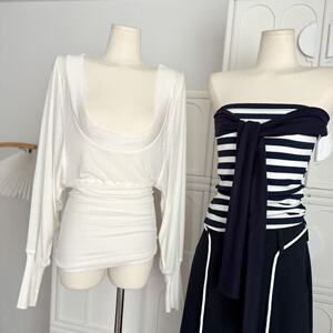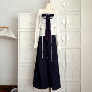 2025秋季新款 设计早秋新款套装条纹抹胸上衣搭配长袖罩衫两件套