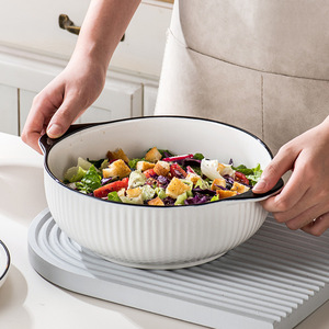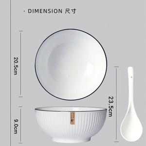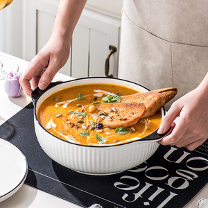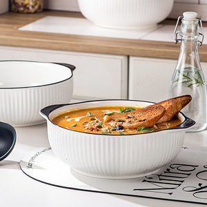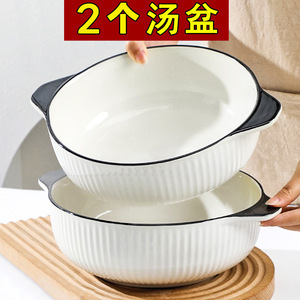 简约陶瓷碗大容量.英寸双耳汤碗大号家用吃面碗盛汤大碗汤盆