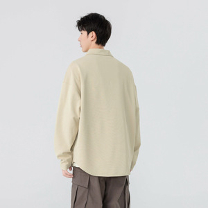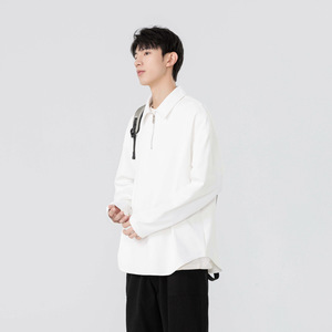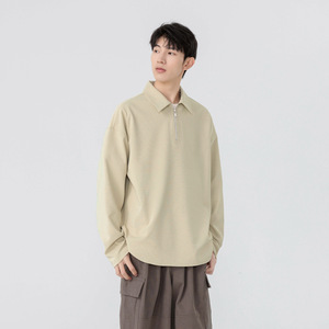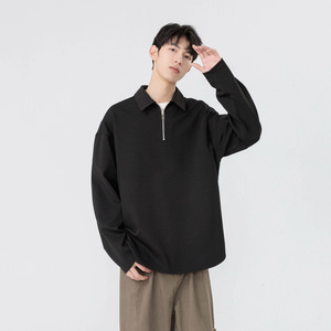 可二开春秋季新款男士宽松日系复古纯色半拉链舒适休闲长袖卫衣