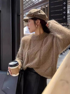 慵懒风麻花毛衣女冬韩式上衣长袖宽松显瘦圆领套头针织打底衫百搭