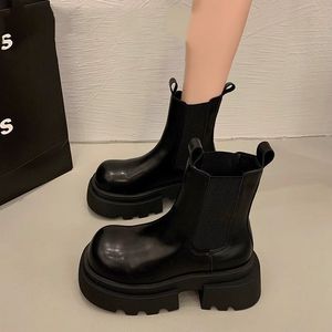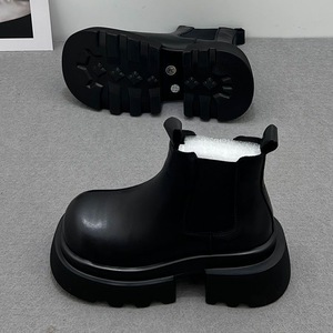 批发英伦风复古切尔西短靴2025新款PU粗跟厚底烟筒靴圆头马丁靴潮