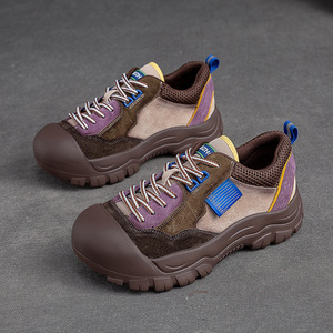 杰骤2025秋季新款复古圆头拼色女单鞋前系带轻便舒适休闲时尚百搭