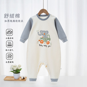 2025年新款儿童纯棉连体睡衣秋冬男女童舒绒连身衣长袖家居服爬衣