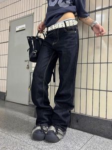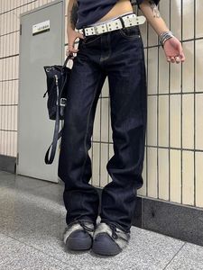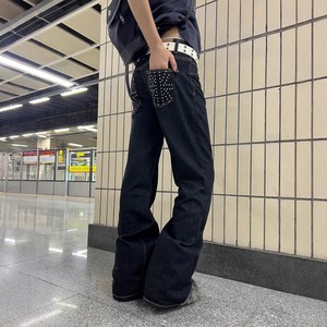 大码美式复古辣妹低腰不规则重工钉珠牛仔裤女设计感直筒显瘦长裤