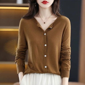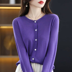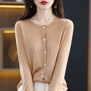 【厂家直供】秋季新款圆领针织开衫外套女纯色薄款宽松外搭毛衣