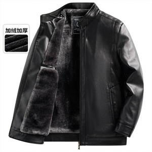 爸爸加绒加厚皮衣男士外套冬装中老年人爷爷冬季保暖立领皮夹克男