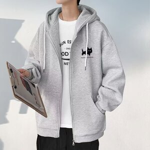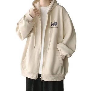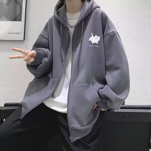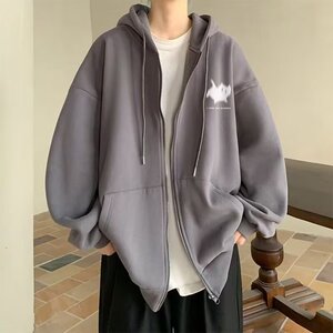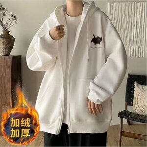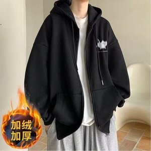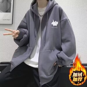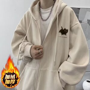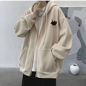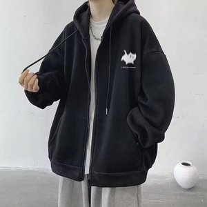 连帽开衫印花卫衣夹克男士秋冬季潮牌运动情侣加绒外套休闲上衣男