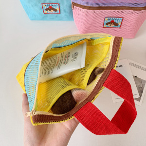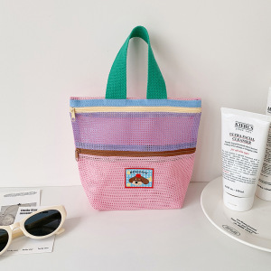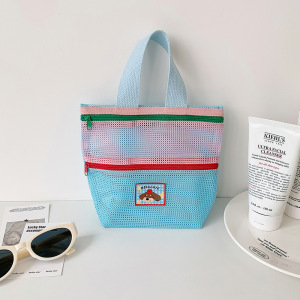 高颜值撞色手提网眼包户外便携收纳包沙滩包护肤品收纳袋双拉链袋