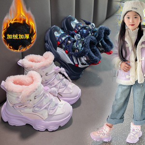 女童加绒运动鞋儿童冬季大棉鞋2025新款男童雪地靴中大童加厚棉靴