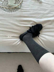 灰色袜子女中筒袜秋冬纯棉无骨透气长袜配德训鞋月子袜堆堆袜春秋