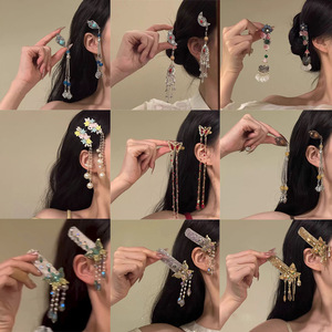 新中式蝴蝶流苏发夹2025年新款拍照氛围感侧边夹小众精致百搭发饰