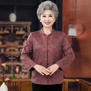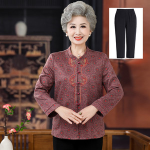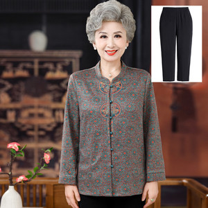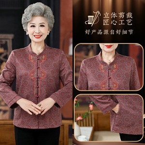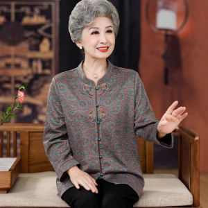 老年妈妈春装长袖衬衫上衣60老太太春秋唐装衬衣薄外套70奶奶衣服