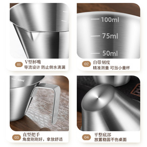 跨境304咖啡萃取杯咖啡接液杯意式浓缩杯量杯带刻度盎司杯咖啡杯