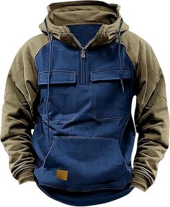 2024跨境亚马逊男士秋冬连帽青年卫衣男士工装撞色休闲卫衣外套