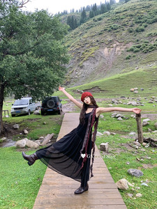 GS.GOOD START博主推荐氛围波嬉风网纱拼接麂皮绒叠穿吊带连衣裙