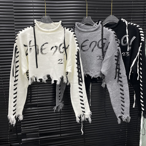 2025年秋季新款时尚设计感字母绑带针织衫上衣女