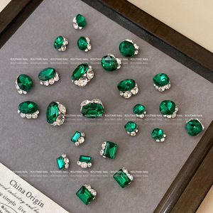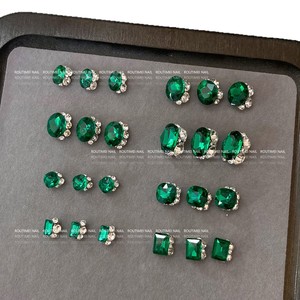 高精品祖母绿堆钻美甲饰品爆闪成品鸽子蛋轻奢网红穿戴甲指甲装饰