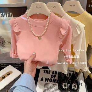 儿童打底衫2025秋季新款宝宝保暖长袖T恤女童上衣打底花边卫衣