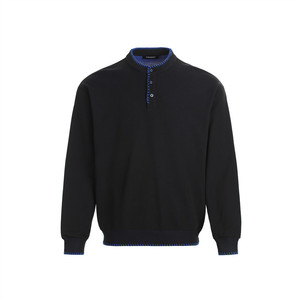 半开纽扣立领卫衣男士宽松休闲长袖针织上衣欧美街潮缝线设计套头