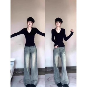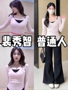 粉色v领毛衣女打底衫春秋季针织衫修身内搭长袖上衣韩系穿搭纯欲
