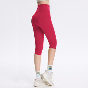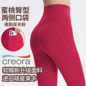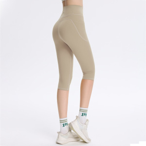 侧口袋七分瑜伽裤女高腰健身户外蜜桃提臀健身跑步裤运动紧身裤