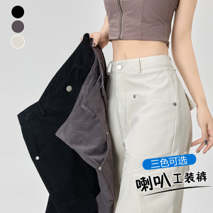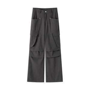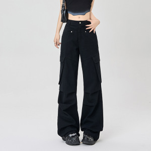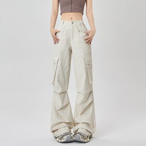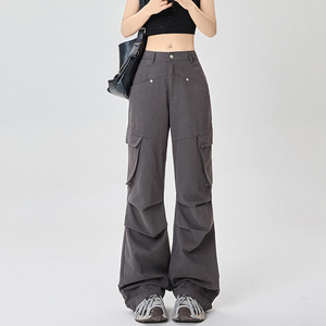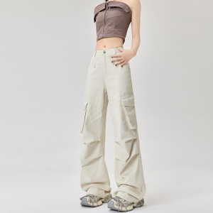 美式复古褶皱多口袋设计感工装裤女装街头潮牌宽松休闲伞兵长裤子