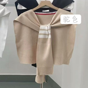 学院风条纹外搭披肩秋季新款百搭针织围巾假领坎肩毛织衫外贸工厂