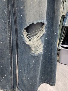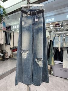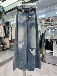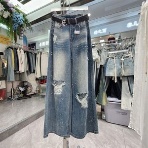 十三行2025夏装新款美式复古垂感破洞牛仔裤女做旧磨白阔腿长裤子