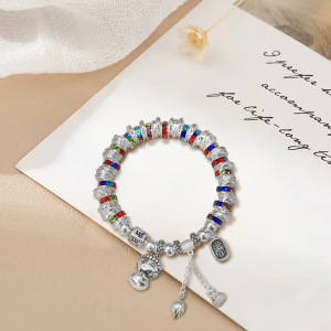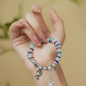 2025新款彩色珠手串宝宝佛吊坠圆珠银纯银手链个性小众送礼物抖音