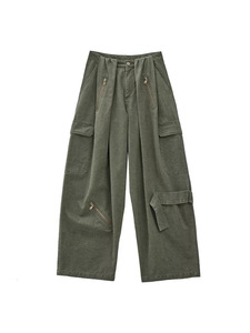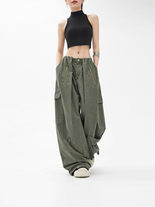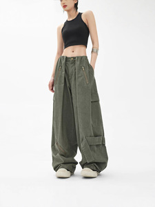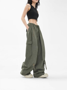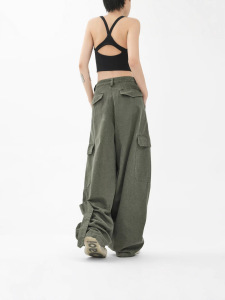 美式复古军绿色弯刀工装牛仔裤女春秋设计感显瘦阔腿休闲伞兵长裤